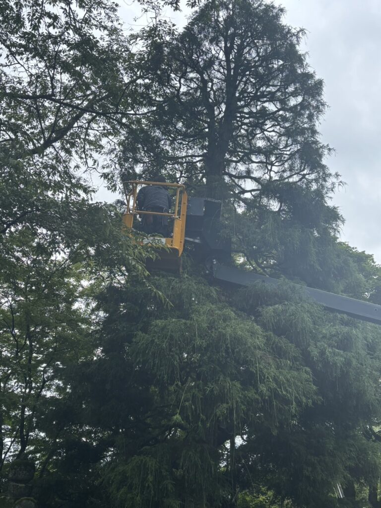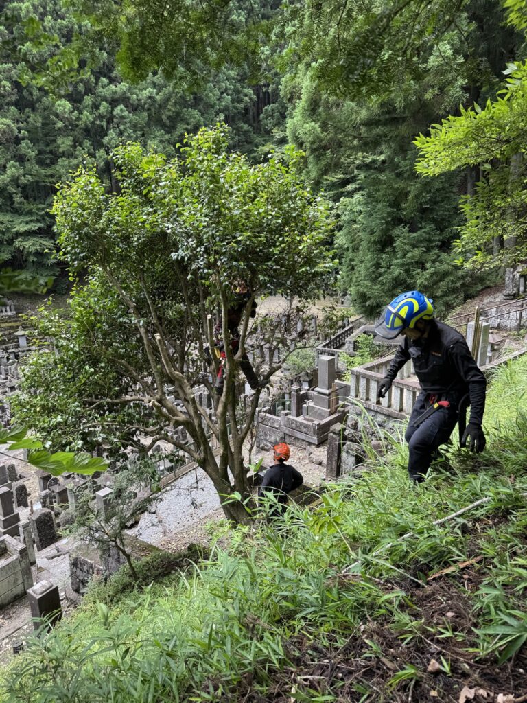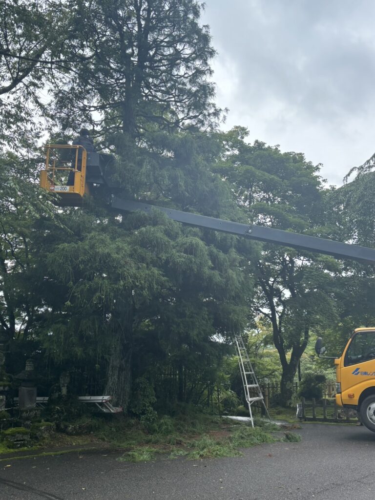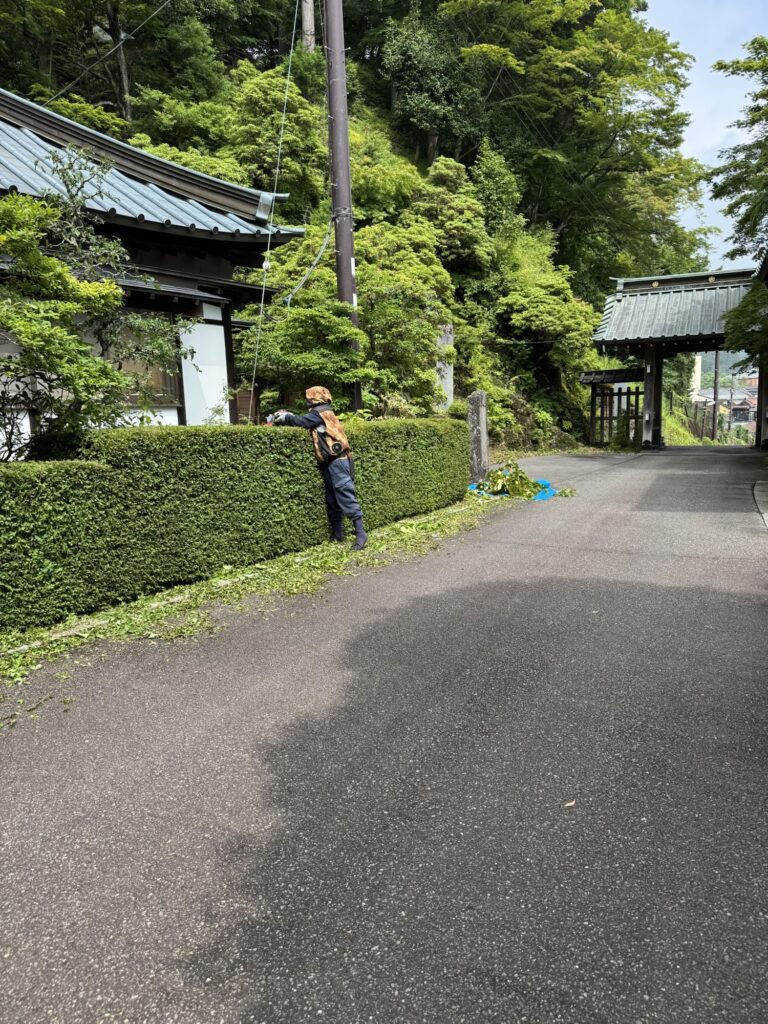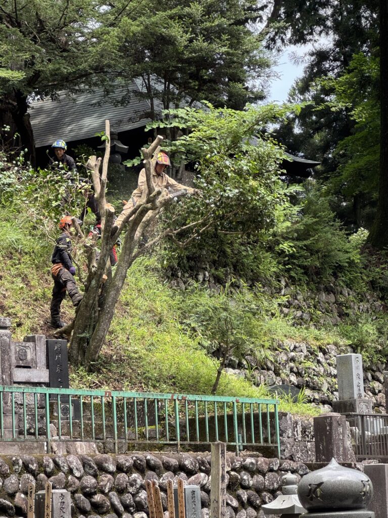 毎年お世話になっています寺院の剪定及び傾斜のキツい場所の伐採作業の様子です。
